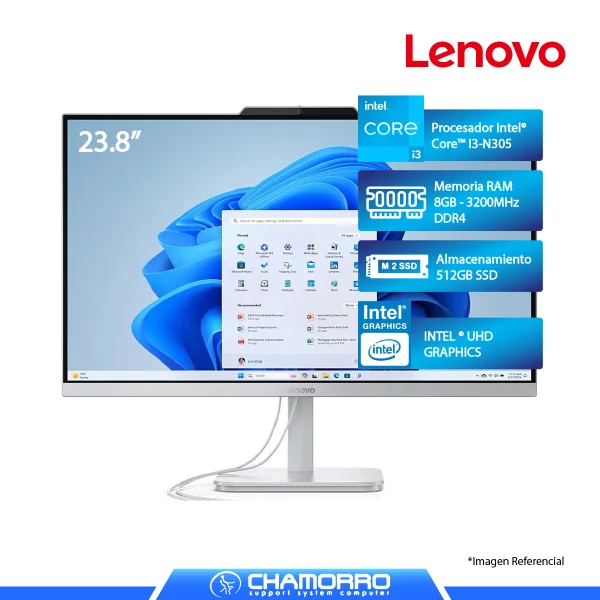 ALL IN ONE LENOVO A100, INTEL CORE I3-N305, 8GB DDR4, SSD 512GB, 23.8″ FHD, WIFI, BT, TECLADO Y MOUSE