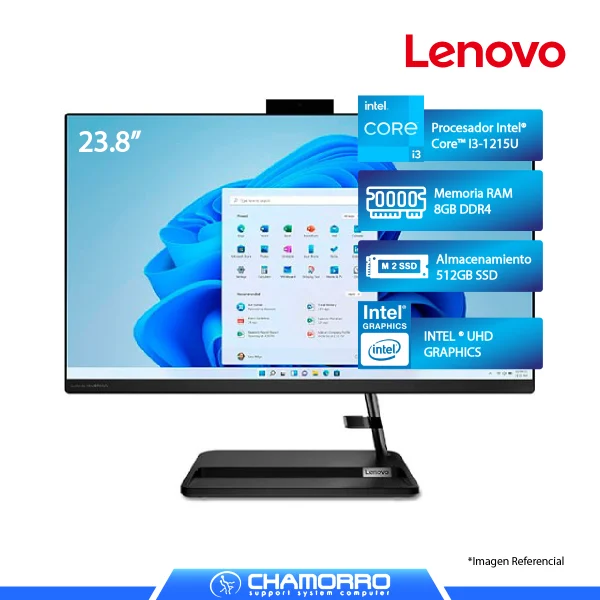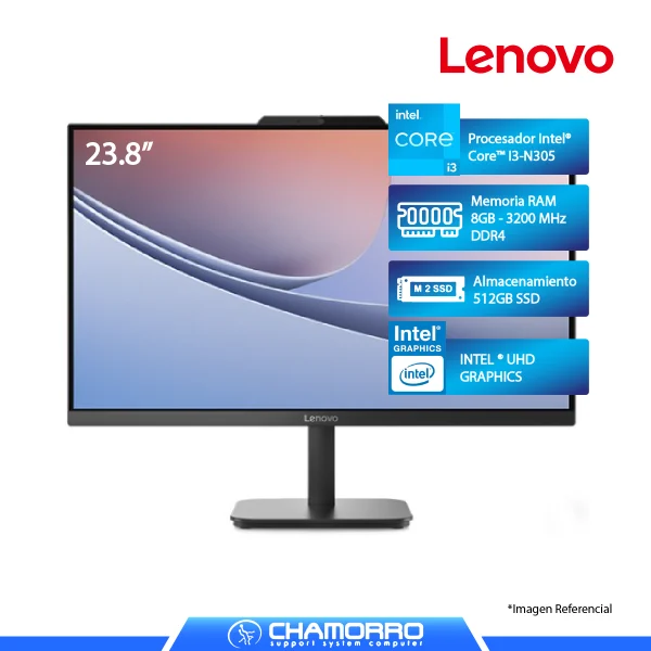ALL IN ONE LENOVO V100, INTEL CORE I3-N305, 8GB RAM, SSD 512GB, 23.8″ FHD, GRÁFICA INTEL UHD