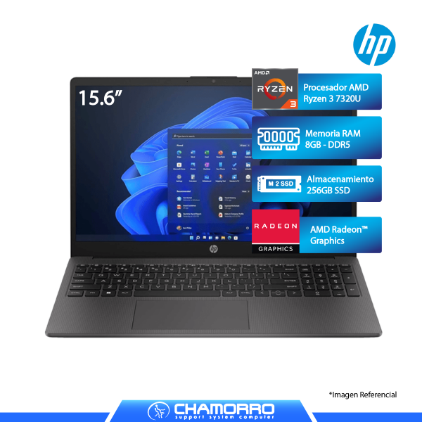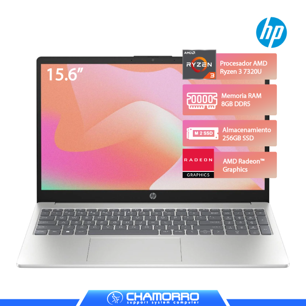 LAPTOP HP 15-FC0005LA, RYZEN 3 7320U, 8GB DDR5, 256GB NVME, 15.6P FHD PLATEADA