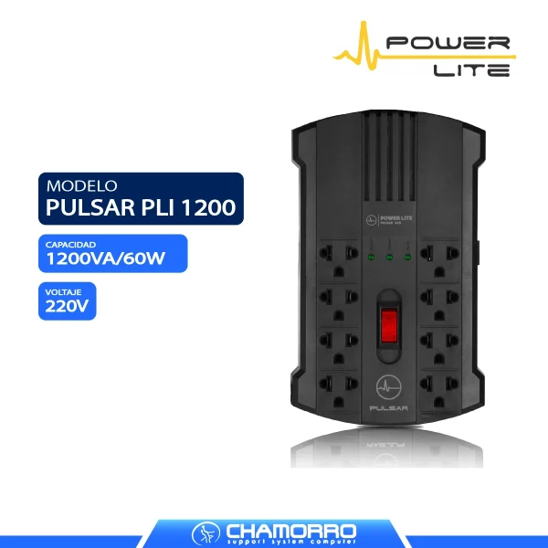 ESTABILIZADOR POWERLITE PULSAR PLI 1200 AVR 1200VA/600W 8 TOMAS