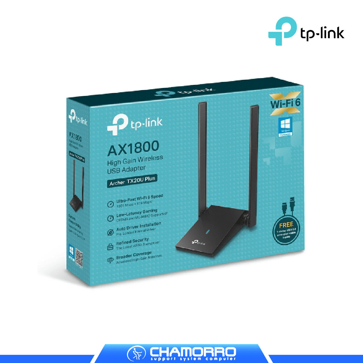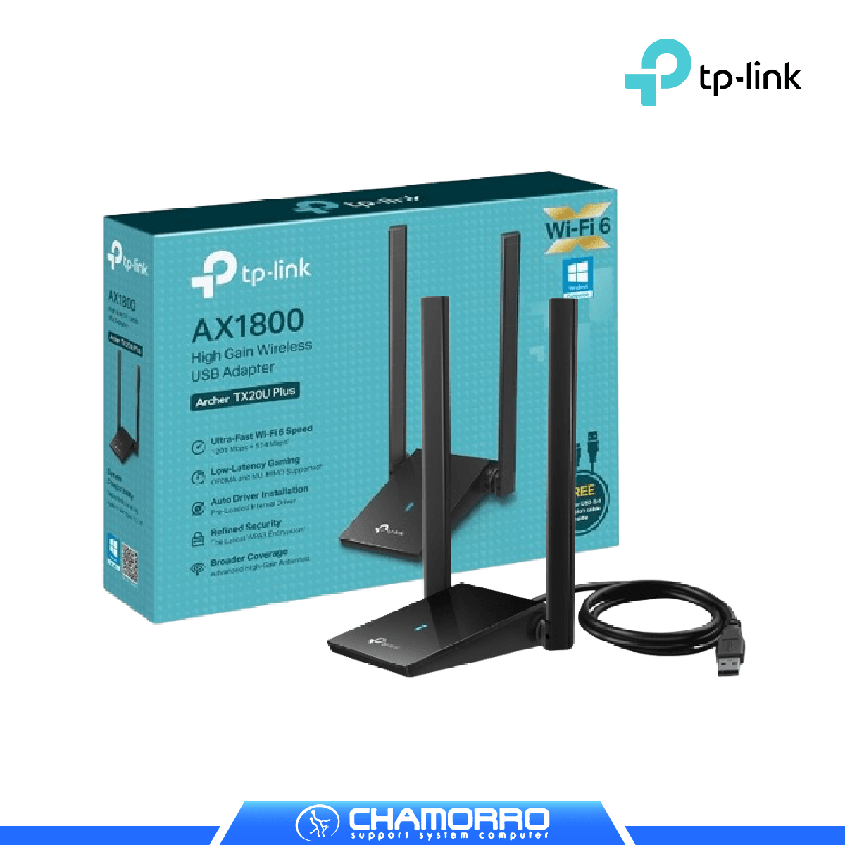 El TP-Link Archer TX20U Plus es un adaptador USB de alta gama que incorpora la revolucionaria tecnología Wi-Fi 6 para ofrecer velocidades inalámbricas de hasta 1800 Mbps (1201 Mbps en 5 GHz + 574 Mbps en 2.4 GHz). Equipado con 2 antenas de alta ganancia y conectividad USB 3.0, este dispositivo transforma cualquier PC en una estación de trabajo de red ultrarrápida, ideal para streaming de video 4K, gaming profesional y videollamadas de alta calidad.
