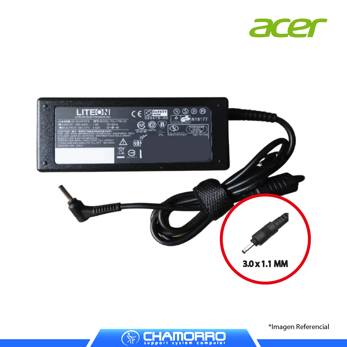 El cargador de laptop Acer con punta fina (3.0 x 1.1 mm) es ideal como reemplazo o fuente de alimentación adicional. Entrega una salida estable de 19V y 3.42A, compatible con la mayoría de los modelos Acer que usan conector fino. Incluye entrada de voltaje universal y cumple con estándares de seguridad y eficiencia energética. Perfecto para quienes buscan rendimiento, durabilidad y compatibilidad.