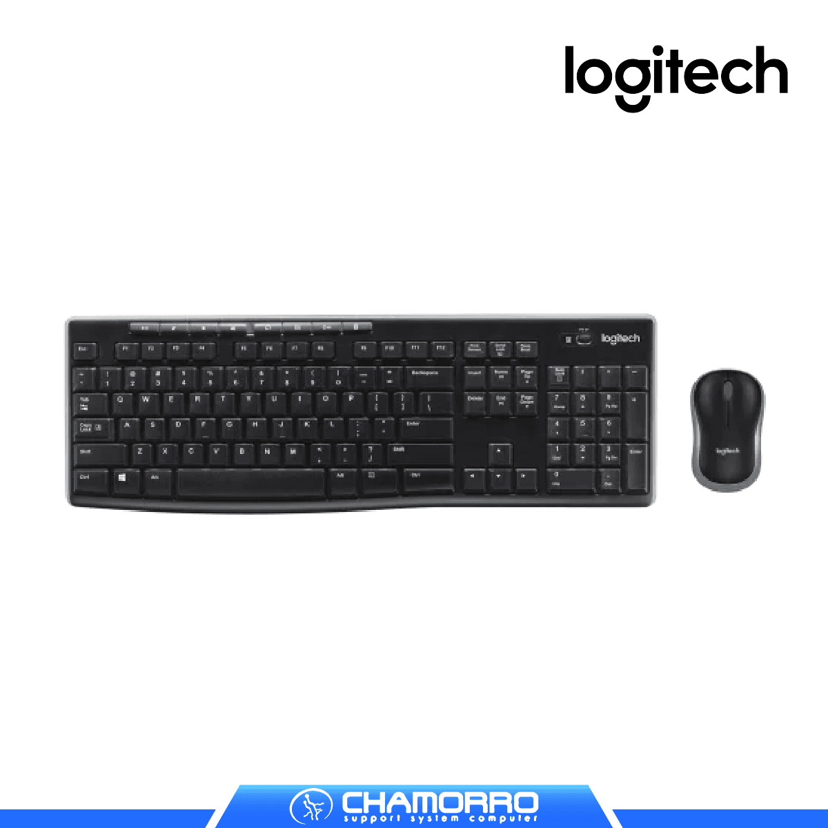 El Combo Logitech MK270 es un conjunto inalámbrico de teclado y mouse con diseño resistente a salpicaduras, altura ajustable, teclado numérico completo, mouse óptico de 3 botones, y extraordinaria duración de baterías (36 meses teclado, 12 meses mouse).