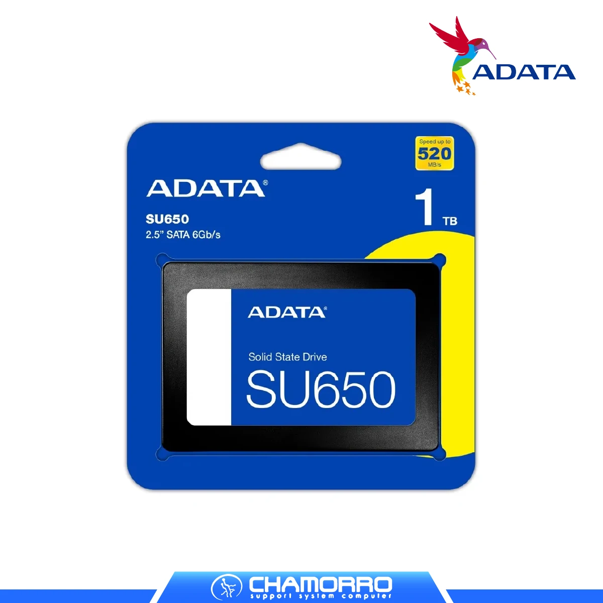 El ADATA SU650 SSD SATA de 1TB es una solución de almacenamiento 2.5″ con interfaz SATA 6Gb/s, velocidad de lectura de hasta 520MB/s, ideal para actualizar sistemas tradicionales con amplia capacidad y confiabilidad respaldada por ADATA.