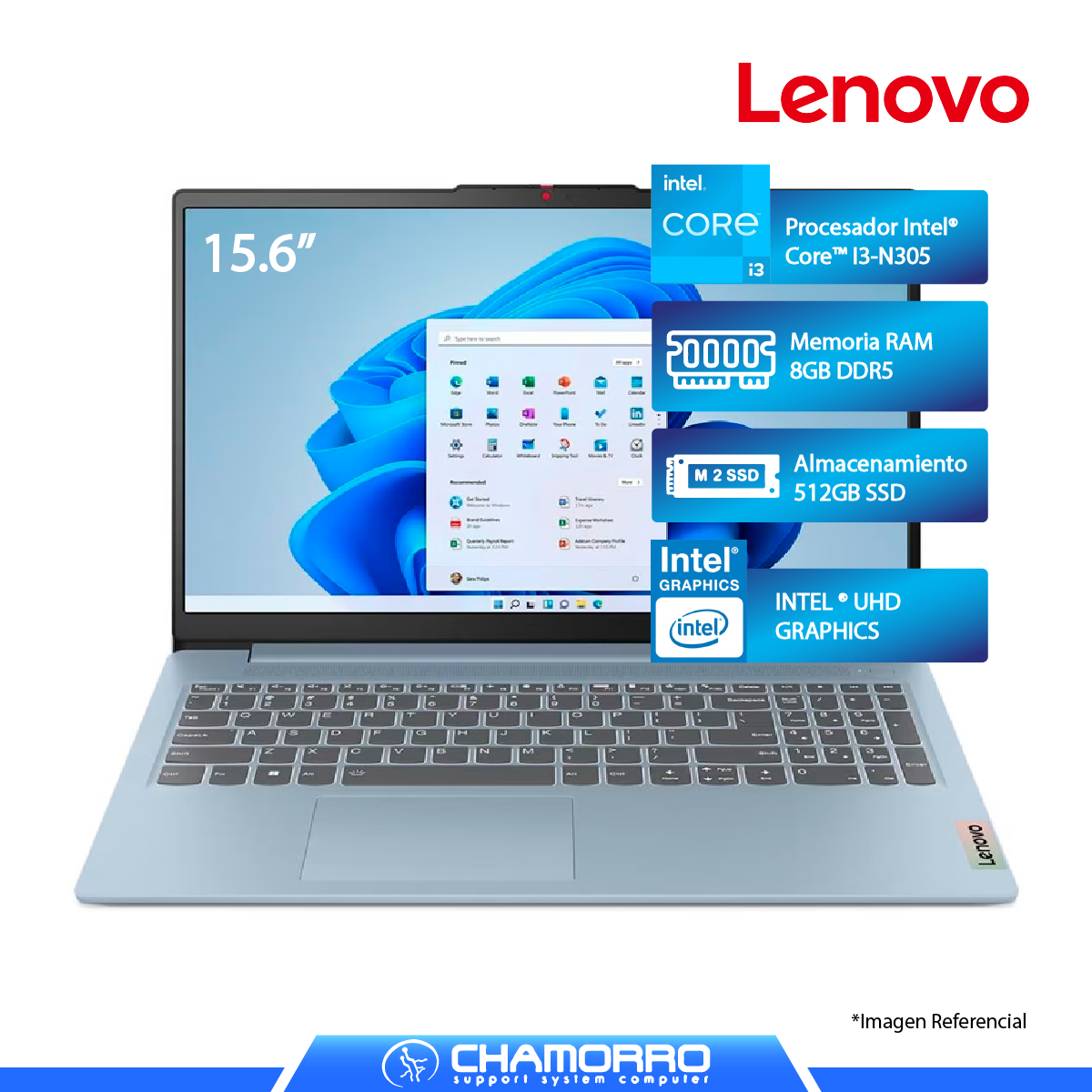 La Laptop Lenovo IdeaPad Slim 3 15IAN8 combina accesibilidad, eficiencia y funcionalidad en un diseño ultradelgado perfecto para estudiantes y usuarios que buscan rendimiento confiable para tareas cotidianas sin comprometer el presupuesto. Equipada with el procesador Intel Core i3-N305 con 8 núcleos eficientes (E-cores) basados en arquitectura Gracemont, operando desde 1.8 GHz base hasta 3.8 GHz en modo turbo con 6MB de caché L3, ofrece un rendimiento sólido para multitasking básico y aplicaciones de productividad. Fabricado en proceso Intel 7 (10nm) con TDP de solo 15W y socket FCBGA1264, este procesador equilibra eficiencia energética con rendimiento adecuado para uso diario. Sus 8GB de RAM DDR5-4800MHz proporcionan velocidades mejoradas y mayor eficiencia, mientras que el almacenamiento SSD de 512GB ofrece espacio amplio y tiempos de acceso rápidos para archivos y aplicaciones. Su pantalla de 15.6″ FHD (1920×1080) con 250 nits de brillo y 45% NTSC proporciona una experiencia visual clara para trabajo, estudio y entretenimiento casual. Con Intel UHD Graphics integrada y capacidad para soportar hasta 3 pantallas independientes (pantalla nativa y 2 monitores externos via HDMI 4K@30Hz y USB-C 4K@60Hz), esta IdeaPad Slim está diseñada para ofrecer versatilidad y productividad en un paquete elegante y asequible.