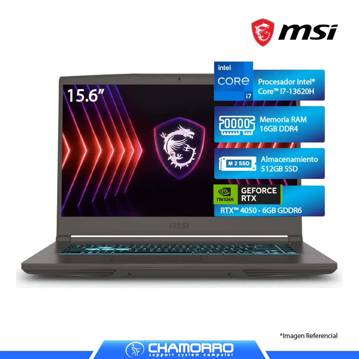 LAPTOP MSI THIN 15 B13UC, I7-13620H, 16GB DDR4, 512GB SSD, 15.6" FHD, RTX 3050 4GB El precio original era: S/ 3,545.50.El precio actual es: S/ 3,364.00.