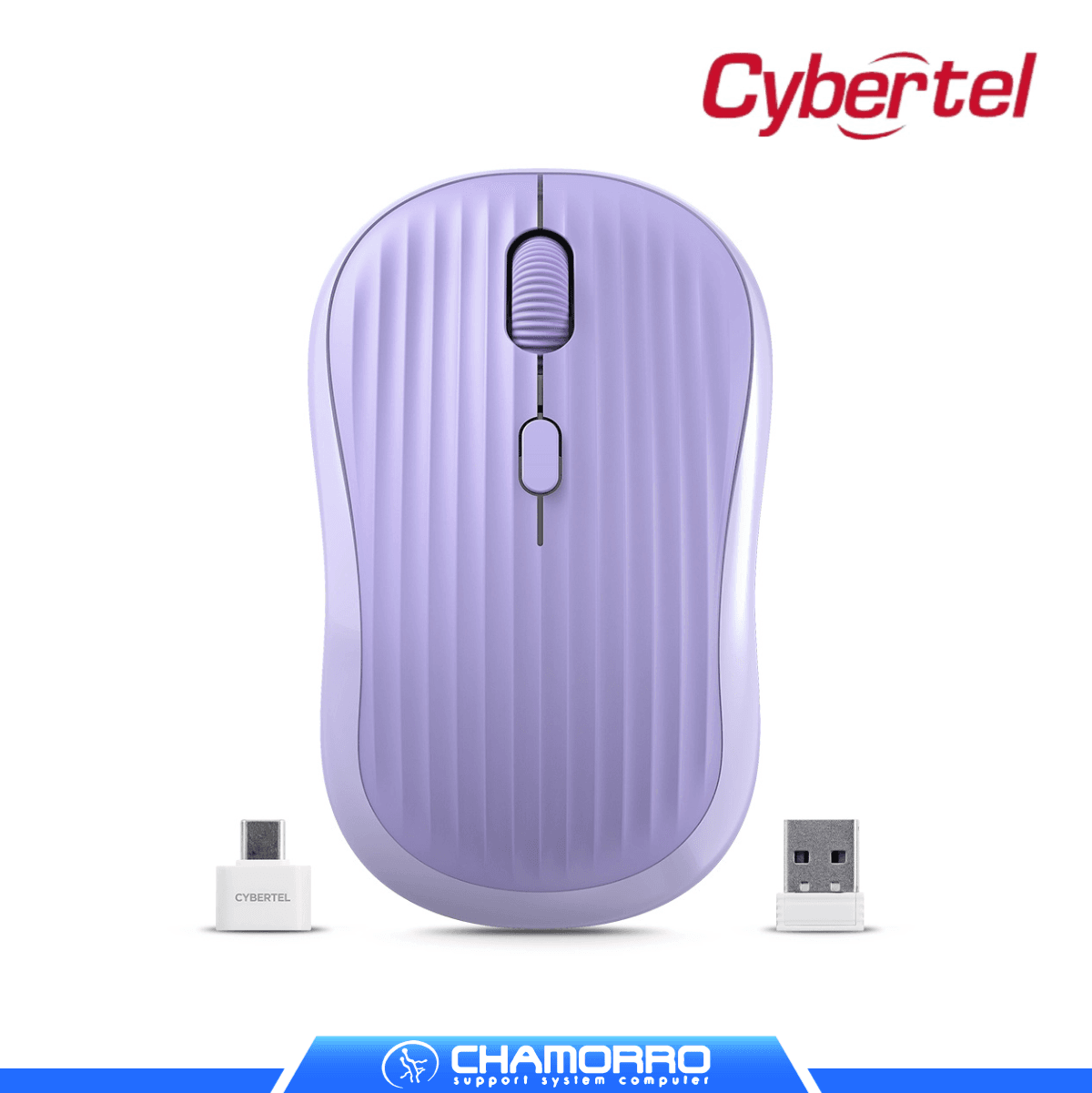 Mouse Cybertel Accord CYB M701-3M púrpura con 3 modos inalámbricos, 1600 DPI y clics silenciosos. Compatible con Windows, incluye nano receptor y garantía de 1 año, ideal para trabajo silencioso.