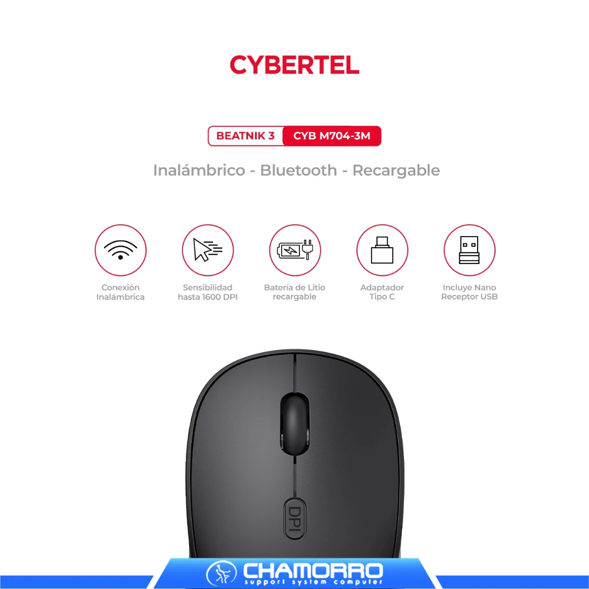 Sé el primero en valorar “MOUSE INALAMBRICO CYBERTEL BEATNIK 3 NUDE CYB M704-3M BT WIFI RECARGABLE”