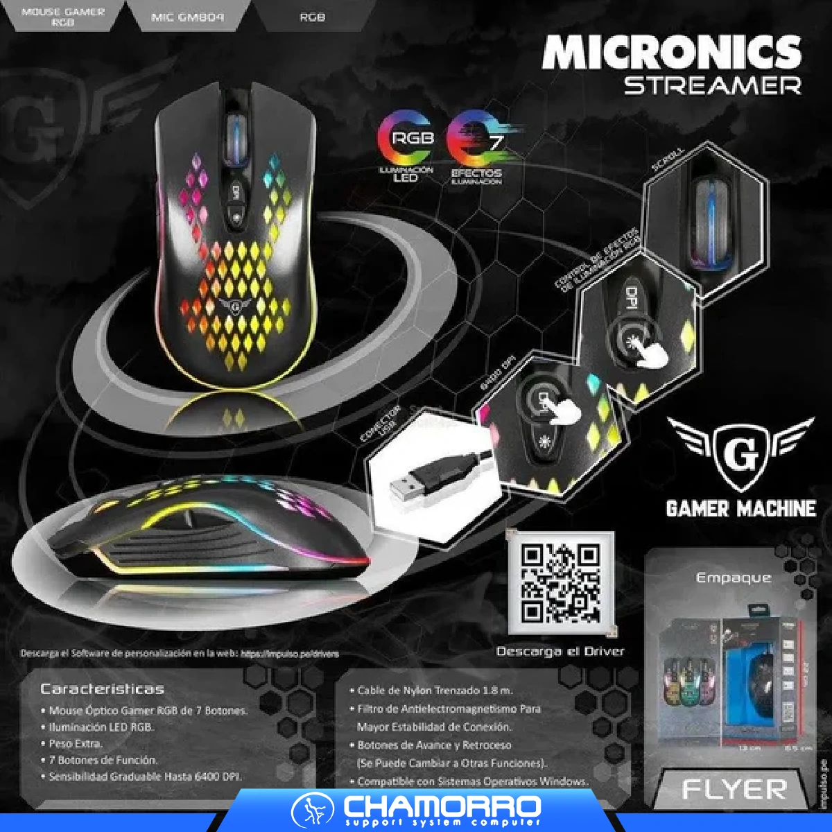Eleva tu nivel de juego con el Mouse Micronics Streamer MIC GM 804, diseñado para ofrecer precisión, velocidad y comodidad. Ideal para gamers, diseñadores y usuarios de oficina que buscan un rendimiento superior con estilo y fiabilidad.