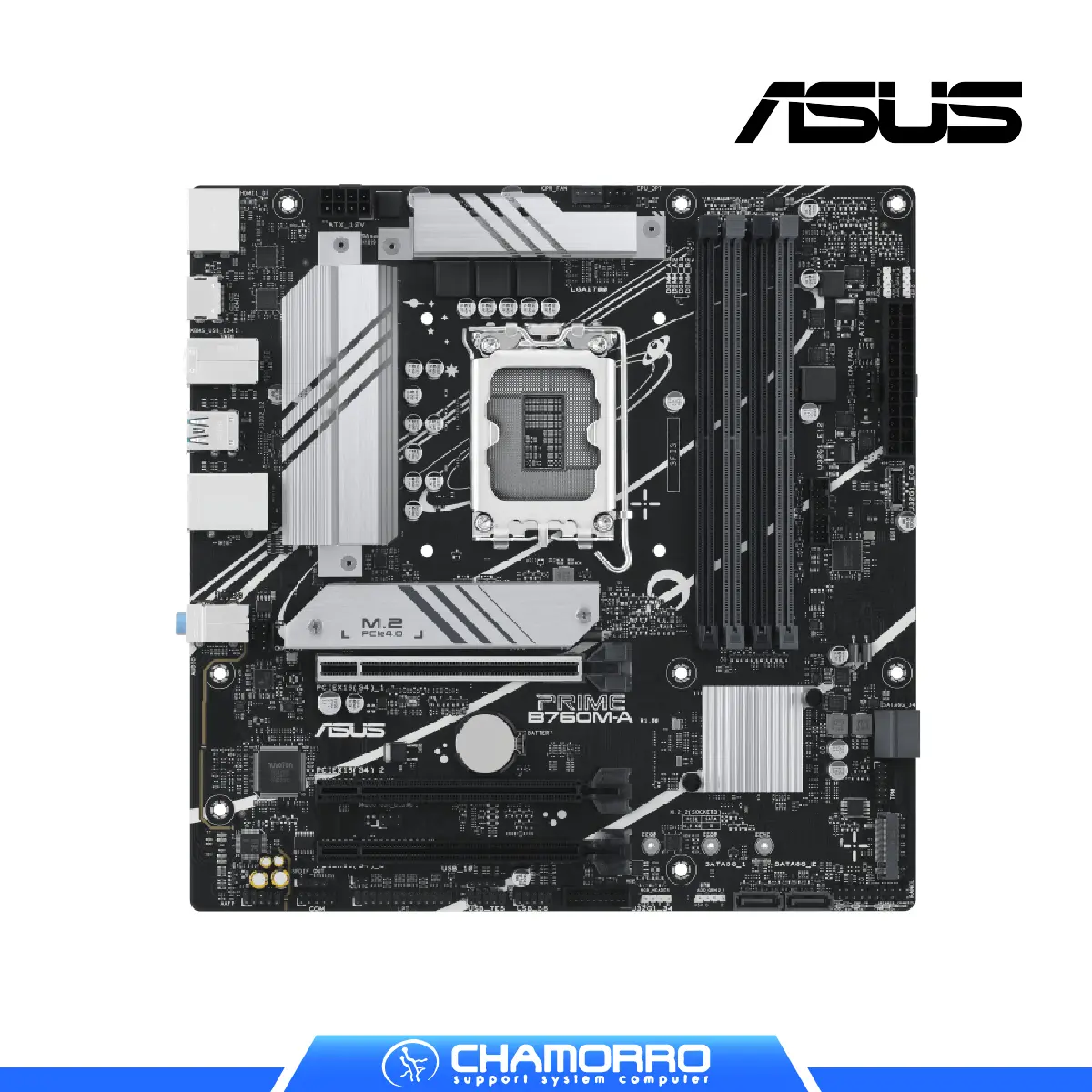 La ASUS PRIME B760M-A CSM es una motherboard mATX equipada con el chipset Intel® B760, diseñada para maximizar el rendimiento de los procesadores Intel® de 13ª y 12ª generación. Este modelo cuenta con soporte para memorias DDR5 con una velocidad de hasta 7200 MHz (OC), conectividad PCIe 4.0 para gráficas y almacenamiento ultrarrápido, y múltiples puertos USB para una experiencia de conexión versátil.