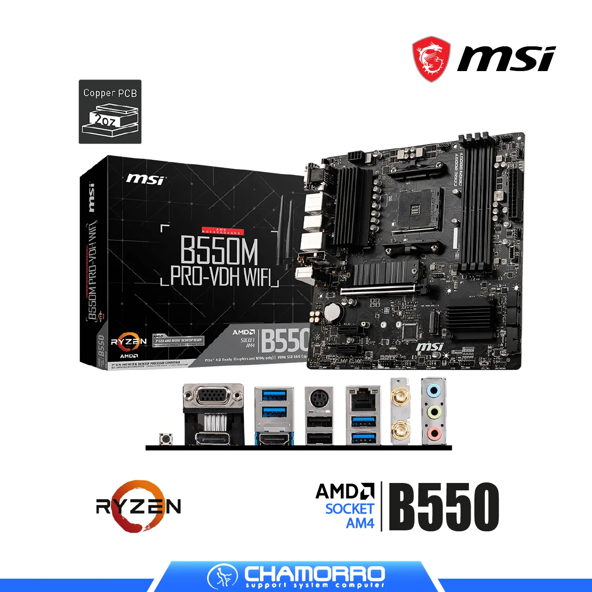 La MSI AMD AM4 B550M PRO-VDH WIFI combina rendimiento, estabilidad y conectividad en un formato Micro-ATX ideal para sistemas compactos de alto rendimiento. Con soporte para procesadores AMD Ryzen de 3ra generación y futuros modelos, esta placa base ofrece una experiencia optimizada gracias a características como WiFi-AC integrado, ranuras PCIe Gen4/Gen3 para almacenamiento ultrarrápido y una amplia gama de puertos USB. Diseñada para usuarios exigentes, incluye refrigeración eficiente, capacidad de overclocking y una interfaz amigable que facilita su configuración.