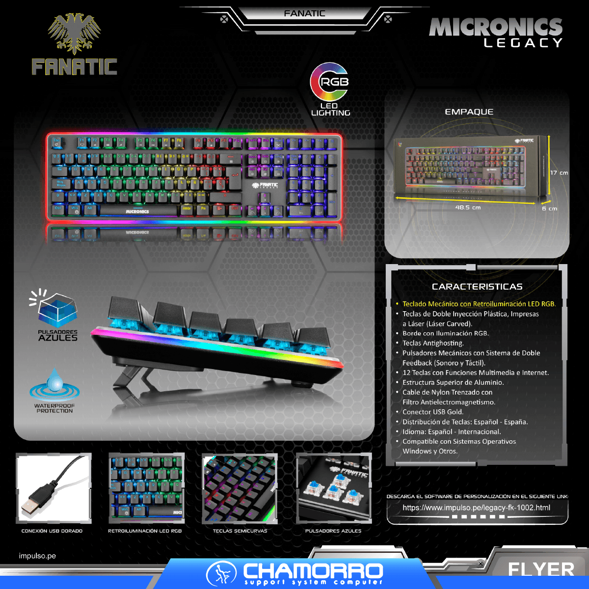 El Teclado Gamer Mecánico Micronics Legacy FK1002 es un teclado fanático mecánico RGB diseñado para ofrecer una experiencia de gaming y escritura profesional de alto nivel. Equipado con pulsadores mecánicos con sistema de doble feedback (sonoro y táctil), proporciona respuesta precisa y sensación premium en cada pulsación, ideal para sesiones de gaming intensivas y trabajo prolongado.