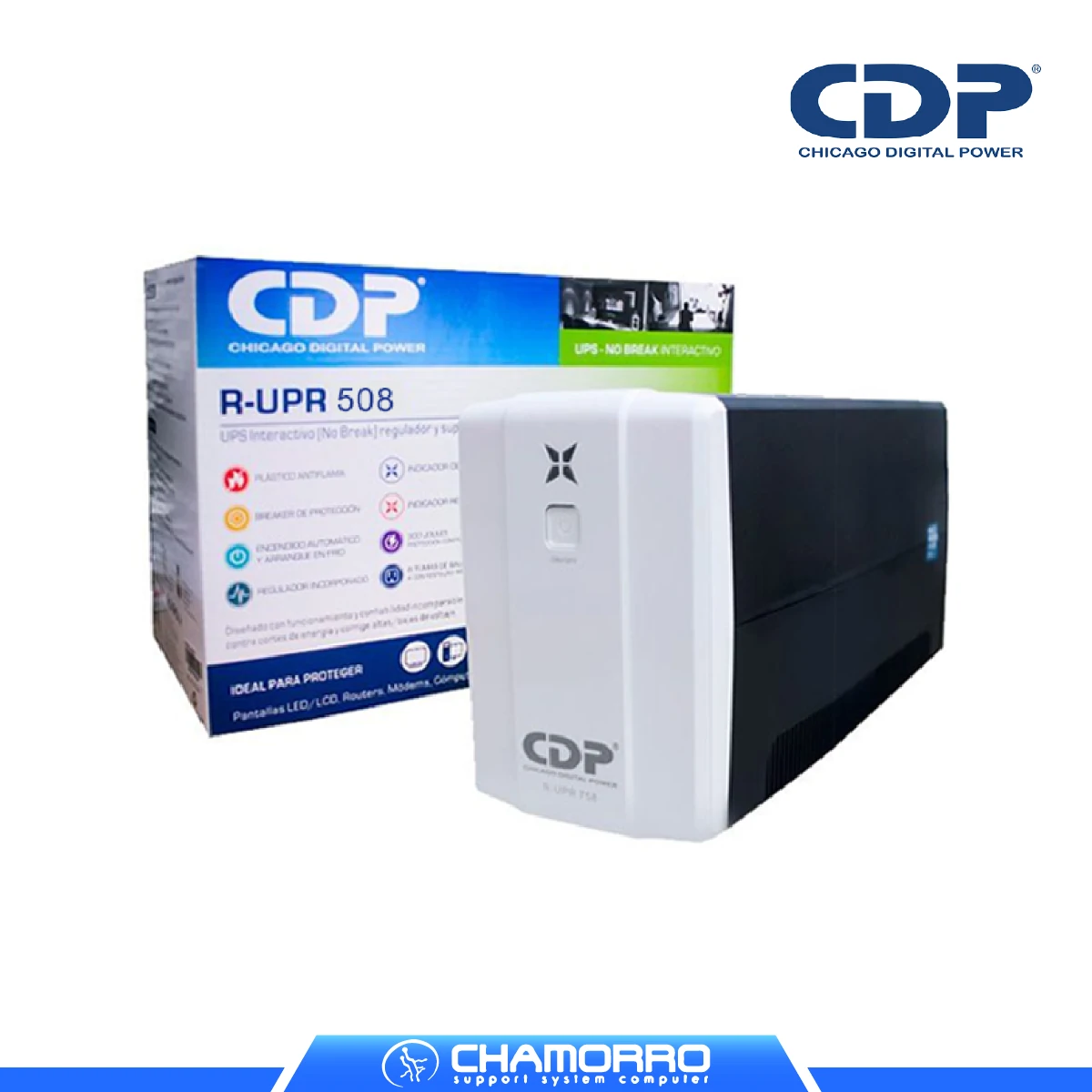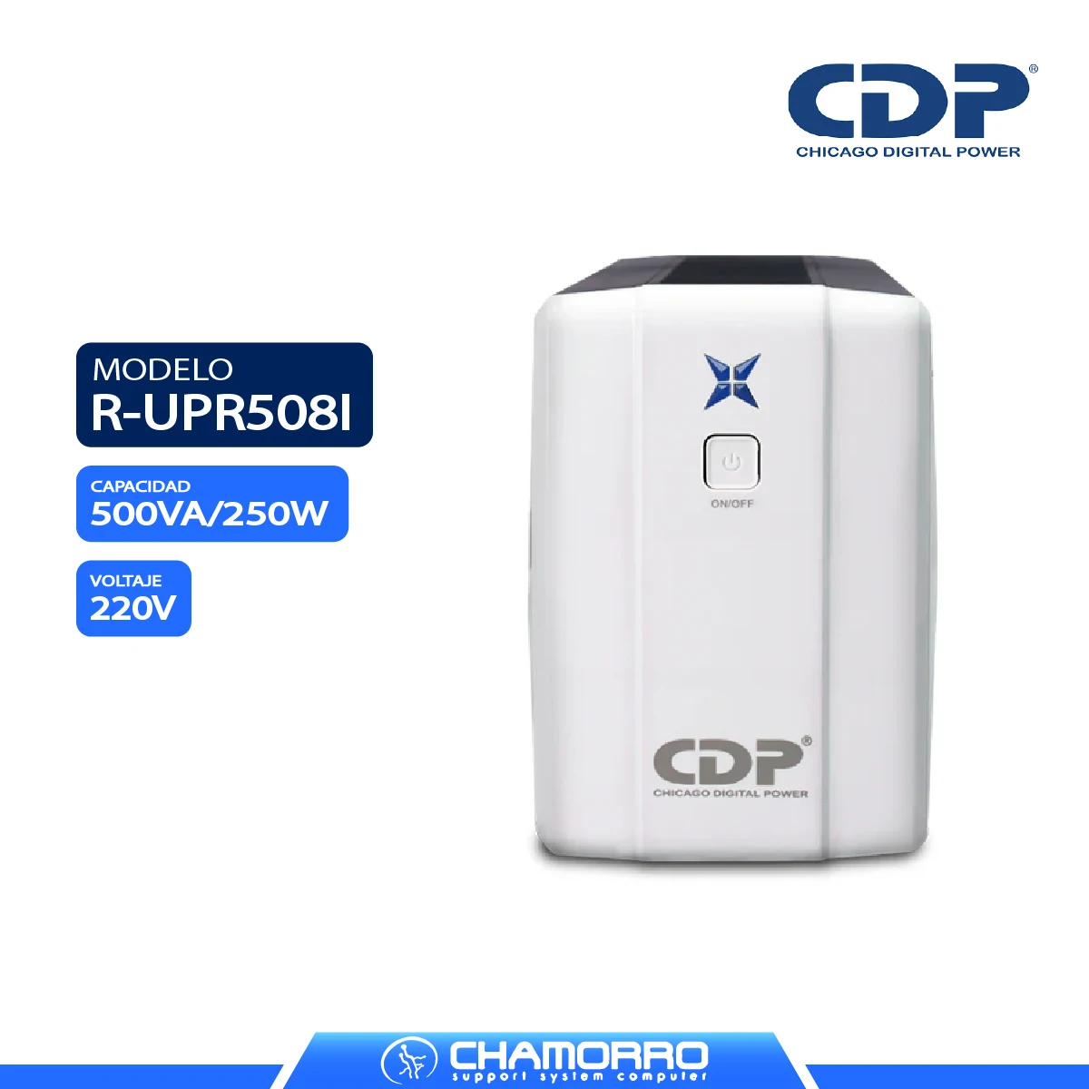 UPS CDP R-UPR508I: Protección eléctrica accesible de 500VA/250W con 8 tomas y conectividad USB completa (5 USB-A + 1 USB-C). Ideal para equipos básicos de oficina con 15-20 minutos de autonomía y AVR integrado.