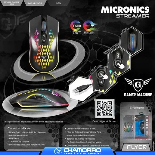 MOUSE GAMER MICRONICS STREAMER MIC GM 804 RGB